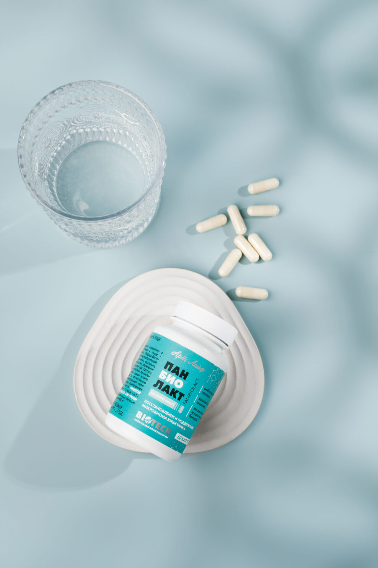 Панбиолакт е синбиотик от ново поколение, при разработването на който са използвани съвременните научни постижения в областта на биотехнологиите. Създаден на базата на консорциум от пробиотични щамове, пребиотични вещества, ензими и цистеин. Насърчава ефективното регулиране и поддържане на чревната хомеостаза и чревната микробиоценоза. Подходящ за потребители с непоносимост към млечен протеин.